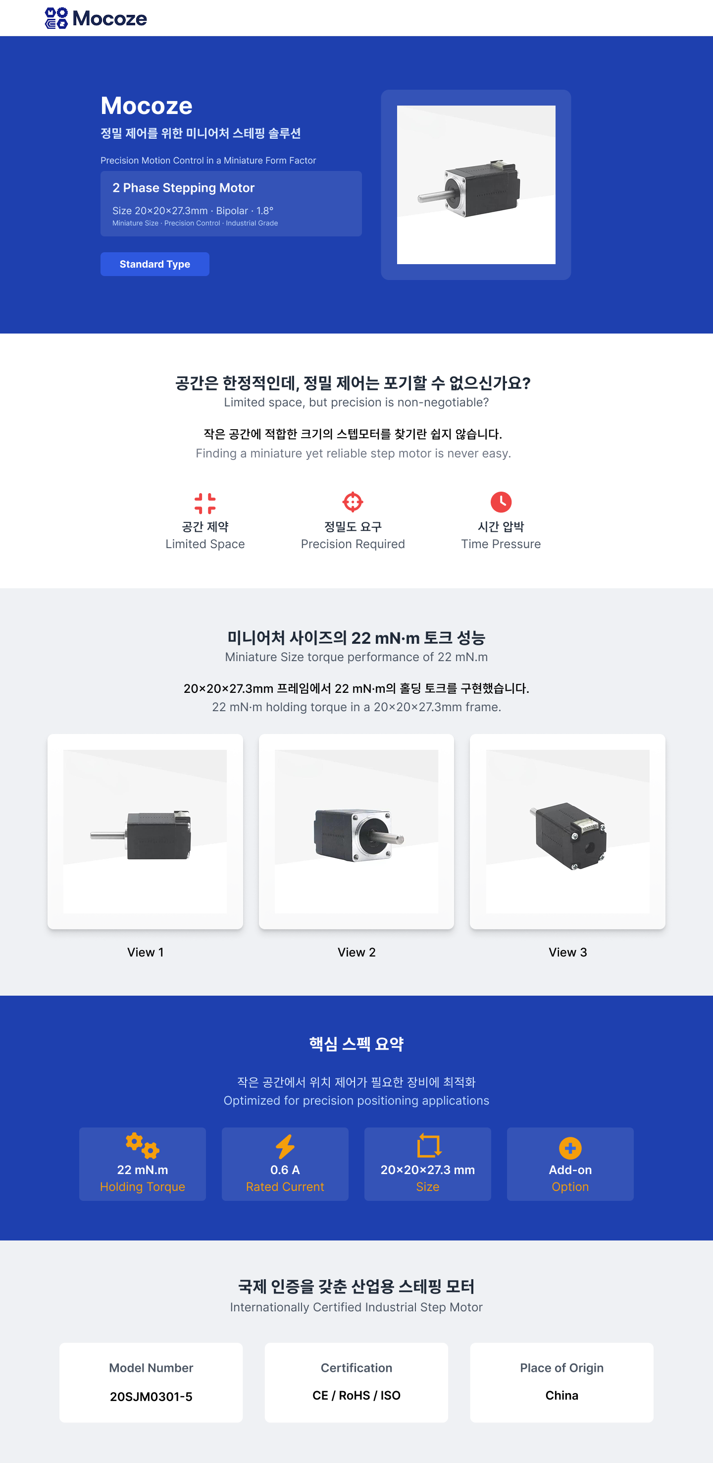 미니어처 사이즈의 22 mN·m 토크 성능으로 작은 공간에서 위치 제어가 필요한 장비에 최적화되어 있습니다.